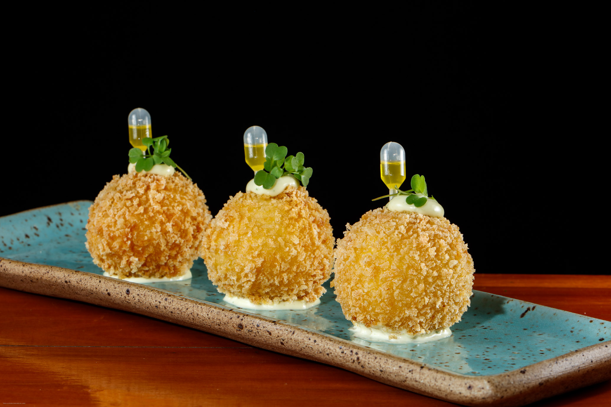 • Entrada ( R$ 30) – Bolinho Maroto (quatro bolinhos de linguiça artesanal recheado com queijo e aioli)