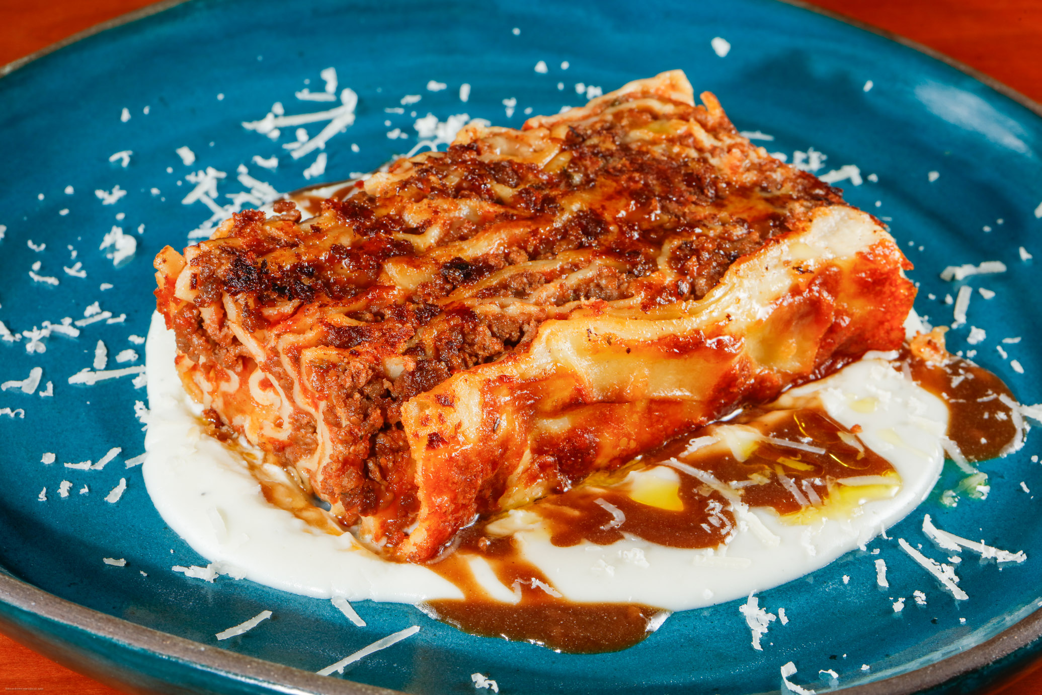 • Prato principal (R$ 40) – Lasanha na Parrilla (oito camadas de fraldinha, finalizada com bechamel cremoso, molho madeira da casa e parmesão ralado)