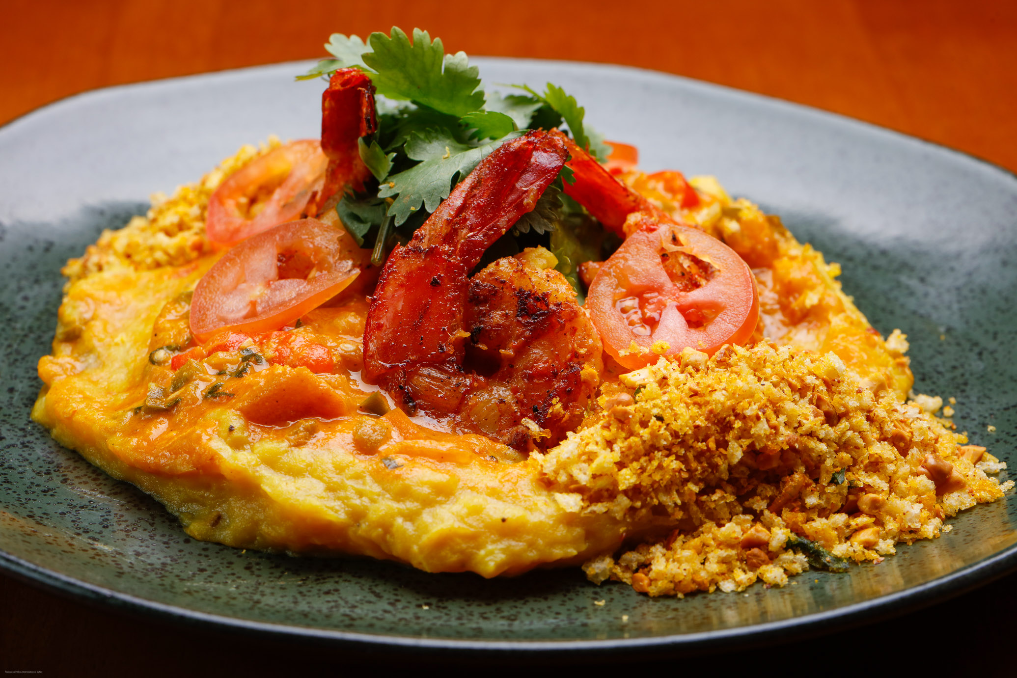 • Prato principal ( R$ 45) – Moqueca de Camarão (camarões frescos no leite de coco artesanal, pimentões coloridos, pimenta e azeite de dendê)