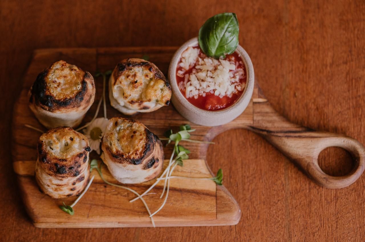 • Entrada ( R$ 30) – Rotolina de calabresa com catupiry (rolinhos de massa de pizza, com calabresa artesanal italiana e catupiry)